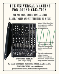 November 2018 Last order accepted for our SYNTHESIZER MODEL 15 for its original price of 3000,- euro (plus VAT and shipping). Next year, this legendary system will be available
