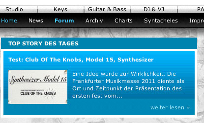 August 2011 --> New: Precision Power Adapter with adjustable +/- 15 and +/- 12 Volts! have a look at the --> "Technically Speaking" link new review about our Synthesizer MODEL 15 in amazona.de!